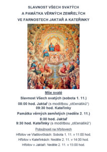Adorace Nejsvětější svátosti je půl hodiny před mší svatou ve středu v Jaktaři a v pátek v Kateřinkách.