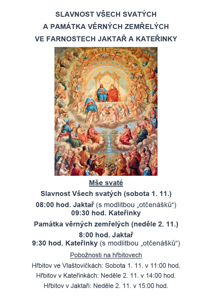 Druhý pátek v měsíci je sloužena mše sv. v kapli Církevní školy sv. Ludmily v Jaktaři v 7:15 hod.